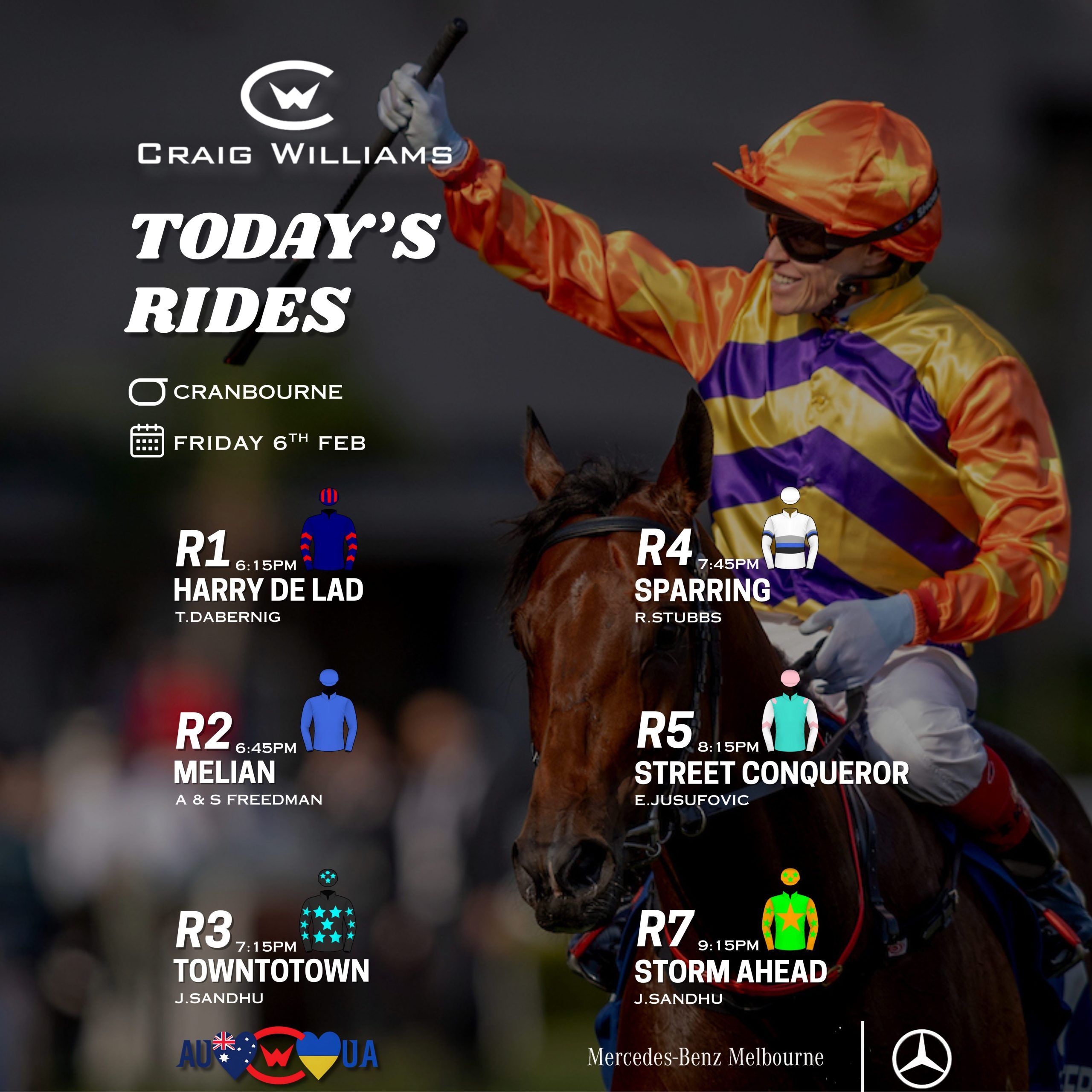 Craig’s family has a long and successful history in racing – his father Allan Williams was one of Melbourne’s top jockeys before injury forced him to retire from riding. Allan became a Group 1 winning trainer while his grandfather was respected Melbourne trainer Tom Harrison. His uncle is Doug Harrison, also a group-winning trainer who is held in high esteem in Melbourne. Craig’s cousin Travis Harrison was a top apprentice jockey when he was sadly killed in a car accident and Travis remains an inspiration to him.
