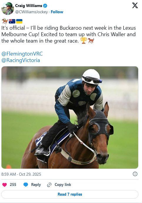 Craig Williams will ride Buckaroo in the Melbourne Cup.
